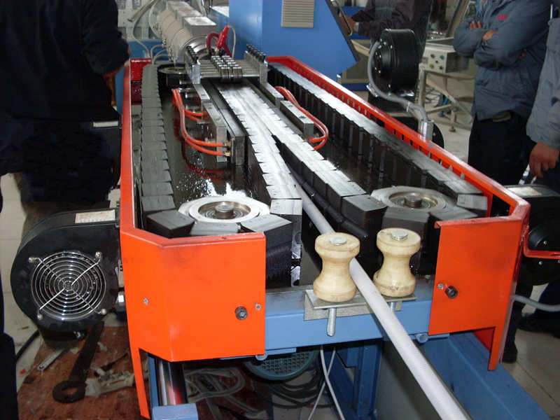 · Extrudeuse: Les matières premières en plastique prétraitées sont chauffées et moulées dans un état fondu, et la fonte est extrudée dans la forme de soufflet par une extrudeuse à vis.